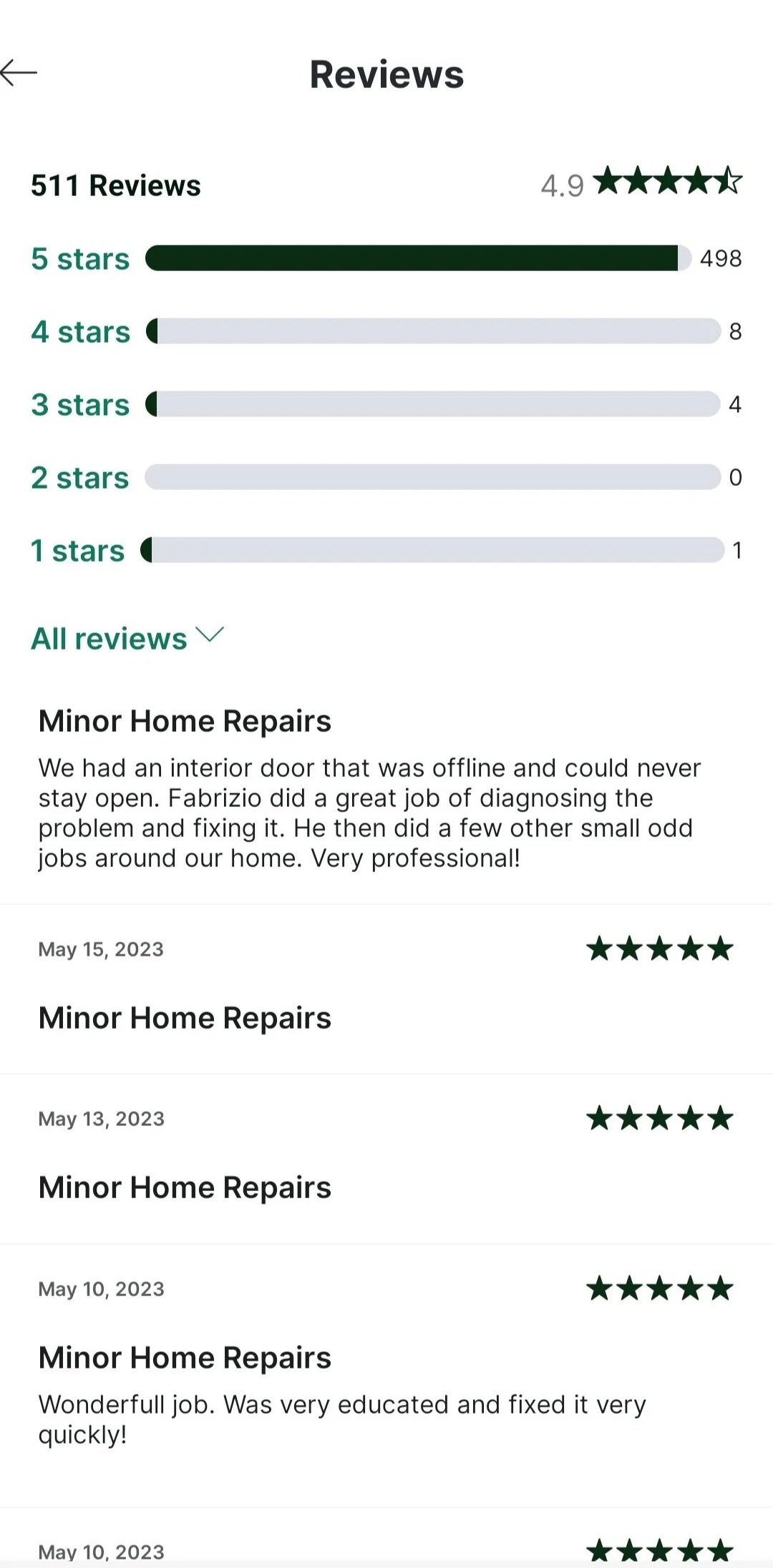 Reviews from popular Chicago handyman tasker app